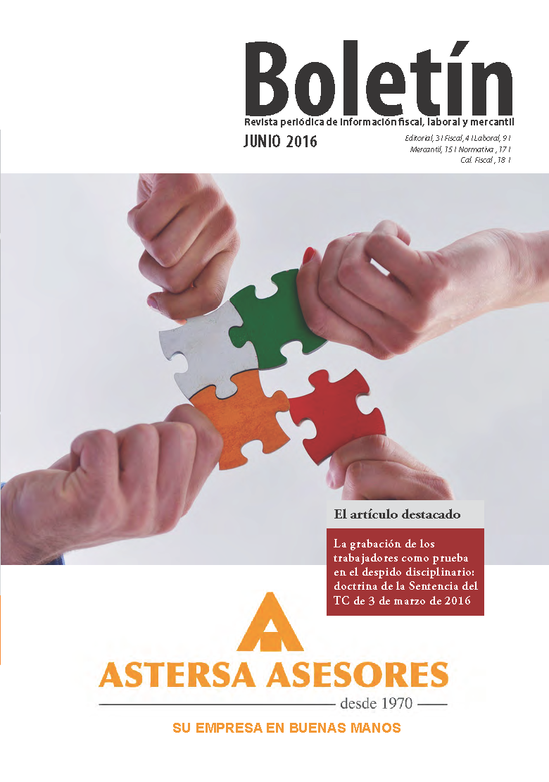 Se ha publicado el boletín mensual de JUNIO con las últimas novedades más interesantes en materias fiscales, mercantiles y laborales, del cuál disponen ya todos nuestros clientes.